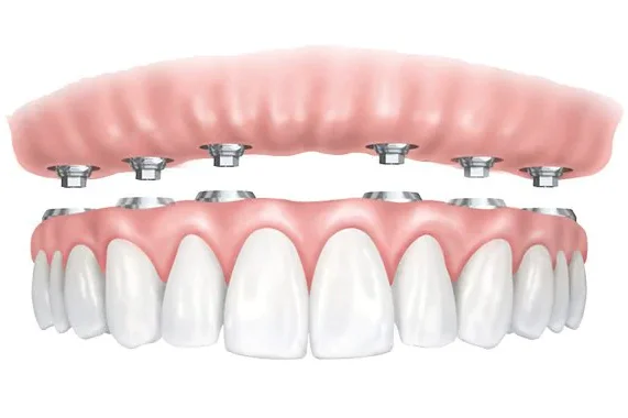 La restauration des édentements partiels ou complets peut être réalisée grâce à la pose d'implants, par un chirugien spécialisé, sur lesquels doivent être posées des couronnes ou des bridges.
